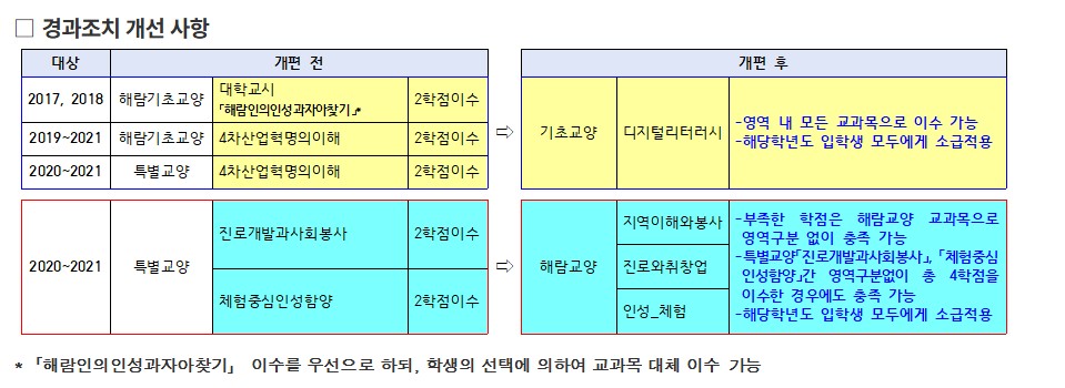 2025학년도 적용 교양 교육과정 경과조치 개선사항 안내